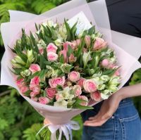 5 цветков в букете являются красноречивым признанием в любви. Лучшим выбором станет пять розовых тюльпанов или роз.