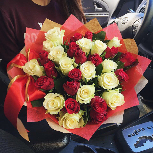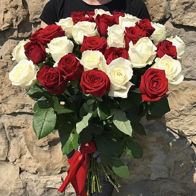 Розы красные и белые от 15 шт.