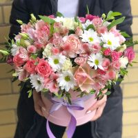 Цветы в шляпной коробке – не только красивый, но и практичный подарок. Букетом можно наслаждаться до месяца, а коробку потом использовать в бытовых целях или оставить на память.